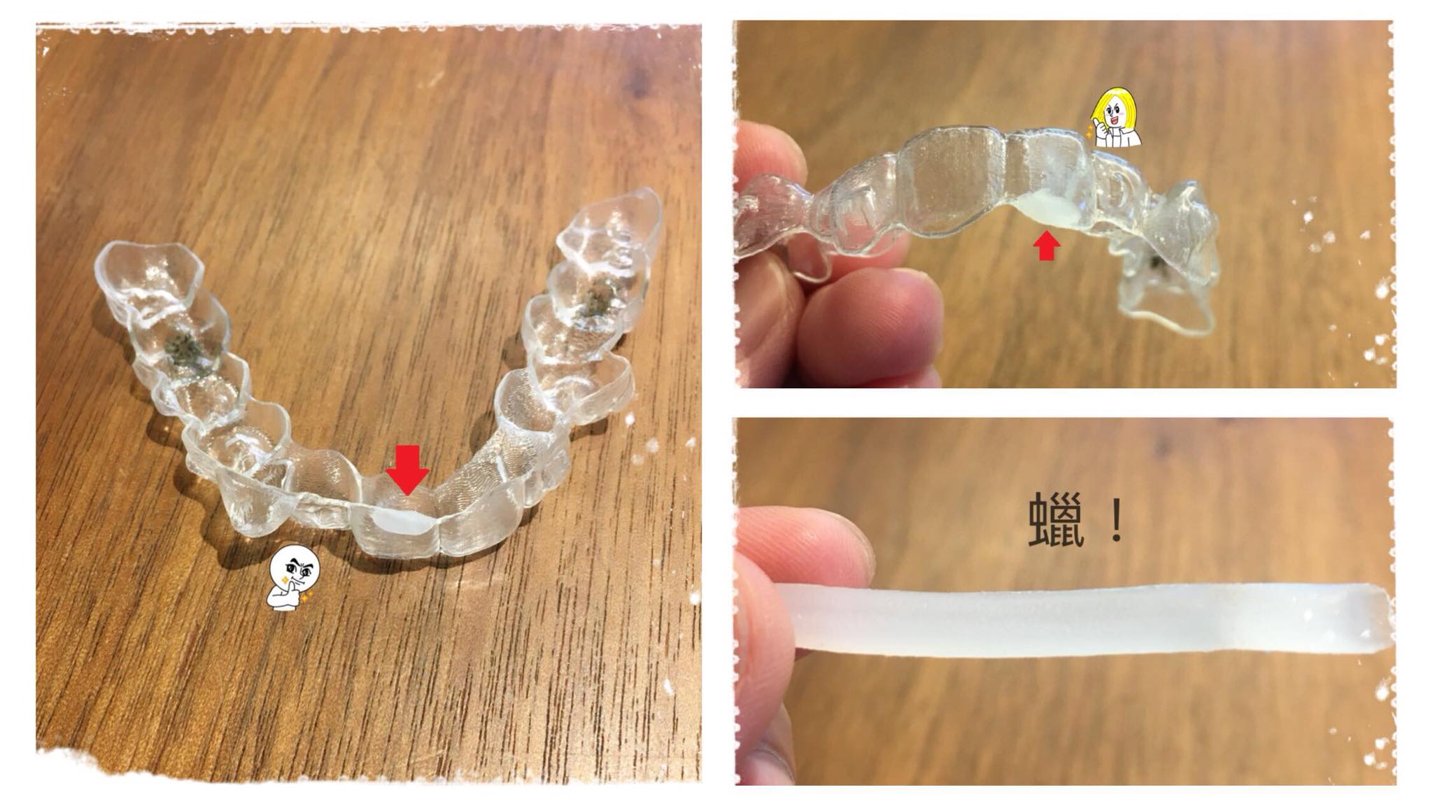 方法二:用一點點蠟把隱形牙套上不平順的地方包起來⭐️
